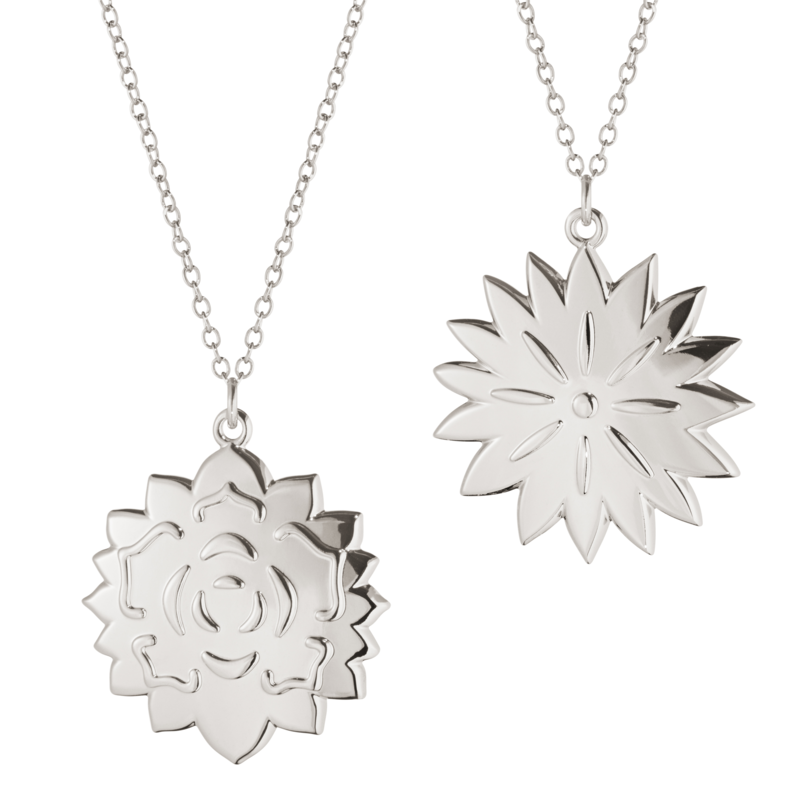 Ornamentet er belagt med palladium og hænger i en fin kæde.