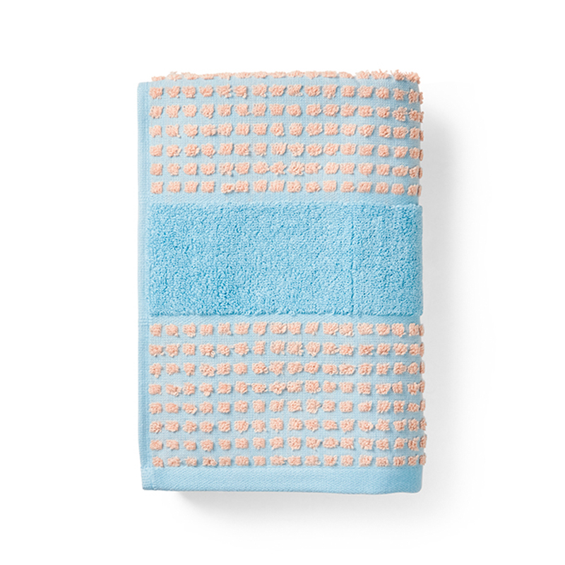 Det smørbløde Check-håndklæde fra Juna er lidt hverdagsluksus i 100% økologisk bomuld, der både er OEKO-TEX-mærket samt GOTS-certificeret. Det bløde håndklæde er ideelt til at smyge sig ind i efter en lækkert bad, og så er det ovenikøbet også ret så flot at have hængende eller liggende foldet sammen. Farvekombinationen er her lyseblå og sand, og den giver sådan et skønt farvepust til badeværelset. Giv dit badeværelse nyt liv med de nye vaskeklude og håndklæder fra Junas Check serie.