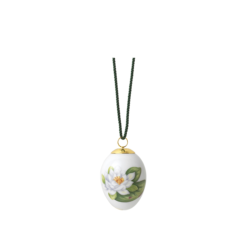 Royal Copenhagens påskeæg giver forårsfornemmelser. Åkanden er en helt særlig blomst, der både kan ses på velkendte malerier og i H. C. Andersens historiefortælling om Tommelise. Nu kan den smukke blomst også hænge i dit hjem som et ægte kunstværk! Åkandens elegance med de hvide kronblade og lettere lyserøde kanter er et smukt motiv til et påskeæg, der kan ligge på middagsbordet eller hænge på en fin gren.