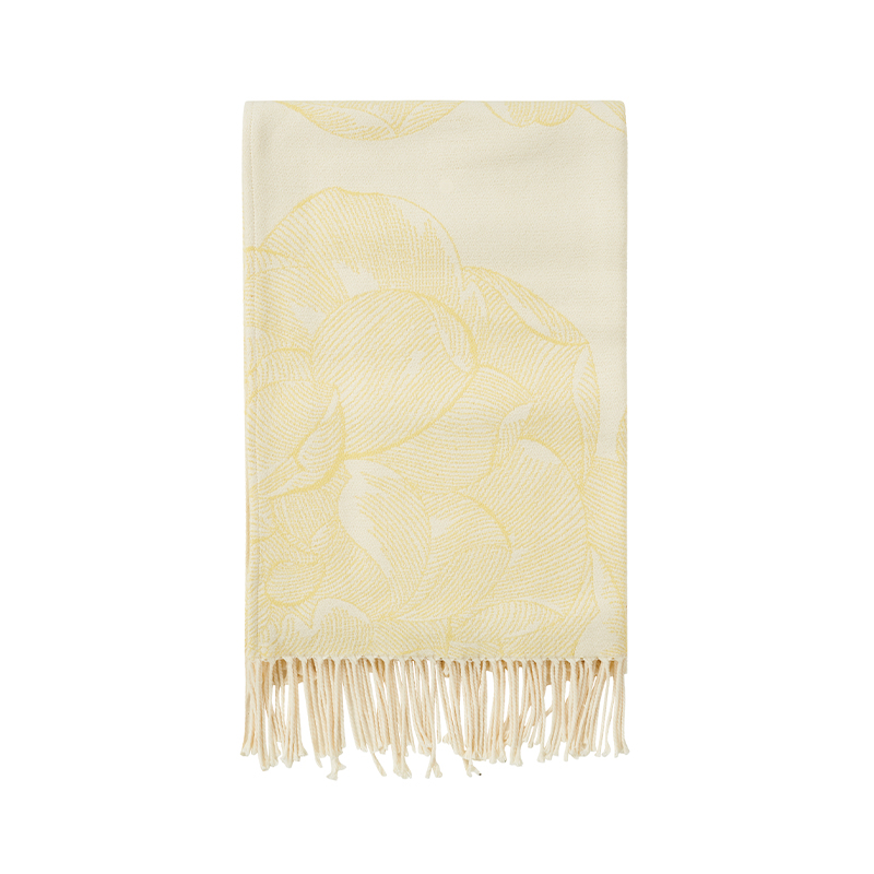 Smukt bomuldsplaid med gult blomstermønster – perfekt til at have i sofaen, lænestolen eller over fodenden i sengen. Når man sidder i sofaen og ser film findes der simpelthen ikke noget mere hyggeligt end at putte sig under et dejligt lunt tæppe. Og så gør det jo heller ikke noget, at plaiden er pæn at se på.